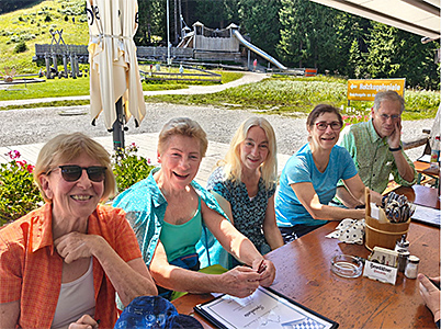 Eine andere Gruppe ist durch die Schleifbachklamm noch einmal bis zum Kolbensattel aufgestiegen und dann mit dem Sessellift nach Oberammergau heruntergefahrenn.