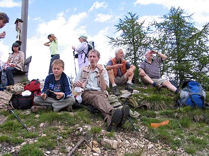 Unten: Rast auf dem Gipfel (Crusc da Rit).