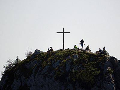 Zwei unentwegte Kletterer sind vom Kolbensattel in Richtung Am Zahn aufgestiegen und über den Grat des Sonnenbergs zum Pürschling gelaufen.