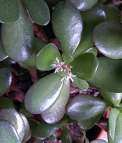Crassula ovata ist wie andere Crassula-Arten ein Überlebenskünstler, der sich mit einem speziellen Stoffwechsel, dem „Crassulacean Acid Metabolism (CAM)“, an das extrem trockene und heiße Klima angepasst hat. Normalerweise nehmen Pflanzen das Kohlenstoffdioxid aus der Luft, das sie bei der Photosynthese zur Bildung von Sauerstoff und Zucker benötigen, tagsüber durch die Spaltöffnungen an der Unterseite der Blätter auf. Um Wasserverlust zu minimieren, bleiben bei Crassula während der heißen Tageszeit die Spaltöffnungen jedoch geschlossen. Sie werden erst nachts geöffnet, um Kohlenstoffdioxid aufzunehmen. Dieses wird anschließend in Form von organischen Säuren, wie Apfelsäure, gespeichert. Tagsüber wird das Kohlenstoffdioxid aus den Säuren wieder freigesetzt und steht dann zur Photosynthese zur Verfügung.